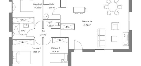 Epure 65 Sud Plain-piedSurface maison 65 m23 pièces2 chambressans garage 3 photos 3 photos Ajouter à mes favoris