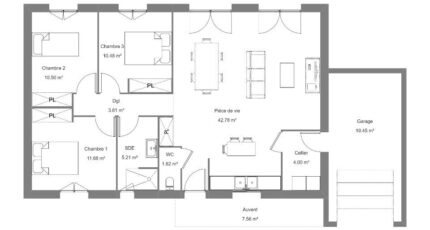 Plan maison 3 pièces 3 chambres Surface maison 90 à 110 m2