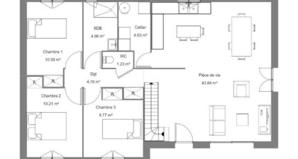 Plan maison 3 pièces 3 chambres Surface maison 90 à 130 m2
