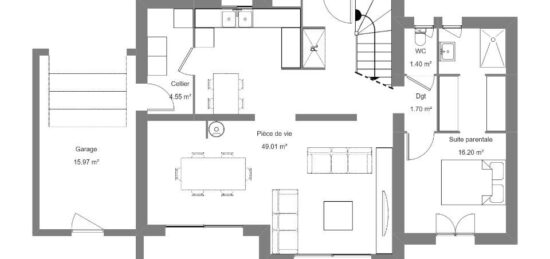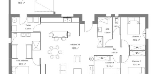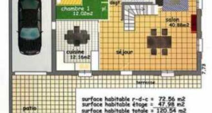 Plan maison 6 pièces 3 chambres Surface maison 120 m2