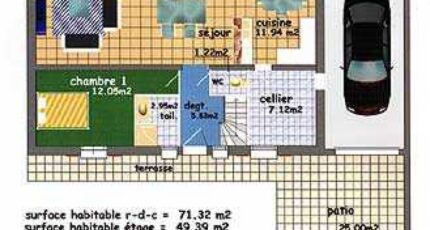 La maison Vignemale* ,surface habitable RdC 71,32m² - surface habitable Etage 49,39m² -4 chambres - modèle avec étage et garage. - * Illustration personnalisée non contractuelle.